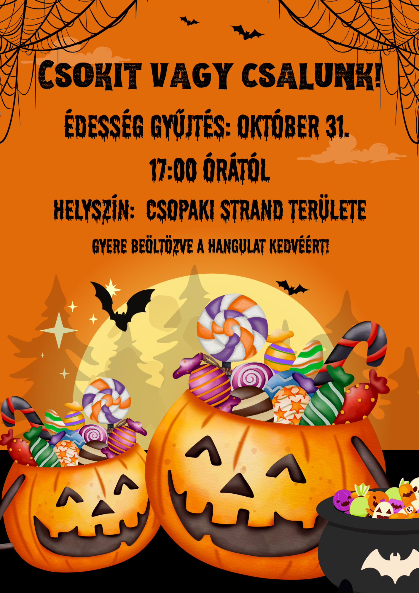 Időpont 2025. October 31. Friday, 17:00 - 18:00 Helyszín Strand 2025. október 31-én 17 órakor indul a cukorkavadászat! Vedd fel a jelmezed, fogd a kosarad és irány a Csopaki Strand!